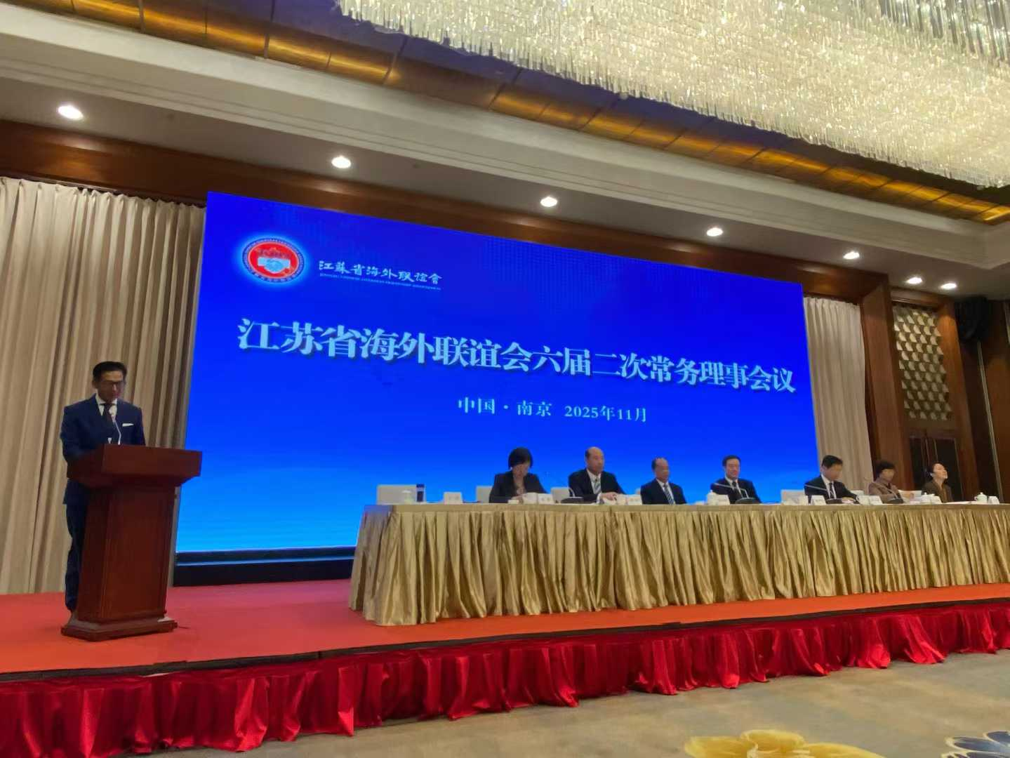 2025年11月13日,江苏省海外联谊会六届二次常务理事会议在南京召开。省海外联谊会副会长顾万峰出席会议并讲话,副会长徐开信作江苏省海外联谊会2025年度工作报告,副会长李卫华就人事安排方案进行说明,副会长宋琦主持会议。